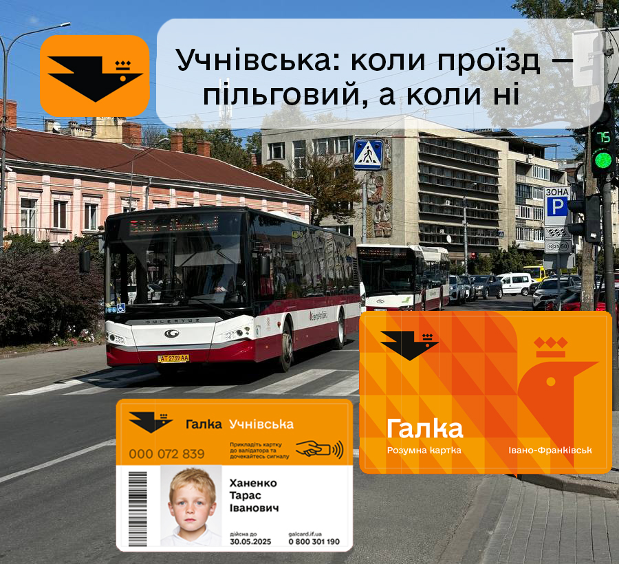 Якщо дитина навчається в ліцеї, гімназії чи іншому навчальному закладі Івано-Франківської громади, учнівська картка «Галка» — це її щоденне підтверджене право на пільговий проїзд. Але лише тоді, коли вона користується карткою правильно — провалідувала, отримала підтвердження у вигляді зеленої галочки на валідаторі, поїхала.